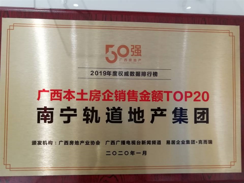 • 公司榮獲2019廣西本土房企銷售金額TOP20獎項(xiàng)