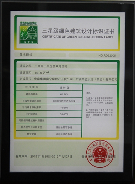 • 翡翠灣榮獲三星級綠色建筑設(shè)計標識證書