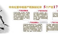 “5個(gè)嚴(yán)禁”“17”個(gè)不準(zhǔn)”和“5個(gè)一律” “5個(gè)嚴(yán)禁”:  嚴(yán)禁拉票賄選、嚴(yán)禁買(mǎi)官賣(mài)官、嚴(yán)禁跑官要官、嚴(yán)禁違規(guī)用人、嚴(yán)禁干擾換屆“17個(gè)不準(zhǔn)”:  1、不準(zhǔn)在民主推薦、民主測(cè)評(píng)、組織考察和選舉中搞拉票等非組織活動(dòng),通過(guò)宴請(qǐng)、安排消費(fèi)活動(dòng)、打電話(huà)、發(fā)短信、當(dāng)面拜訪、委托或者授意中間人出面說(shuō)情、舉辦聯(lián)誼活動(dòng)等形