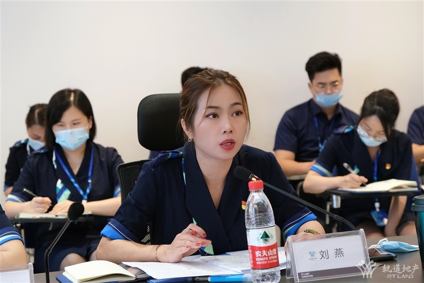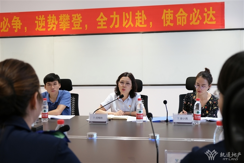 參觀結束后,閉梅秋一行聽取了軌道地產(chǎn)咨詢公司上半年經(jīng)營工作情況匯報。劉燕從公司目前經(jīng)營范圍、運營模式、企業(yè)定位、2022年上半年營銷工作措施及成效、黨風廉政建設工作情況等進行全面匯報。與會人員就目前在營銷業(yè)務工作方面存在的難點、經(jīng)營困境進行了交流討論。