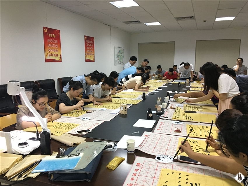 725日中午1230,書法班開班,廣西書法家協(xié)會的蒙匯鵬老師先從執(zhí)筆姿勢、手法運用、字體結(jié)構(gòu)等基礎(chǔ)理論知識進行了講授,在實踐練習過程中,大家認真臨摹,反復(fù)練習,個個興趣盎然,現(xiàn)場氣氛濃厚,一片翰墨飄香。