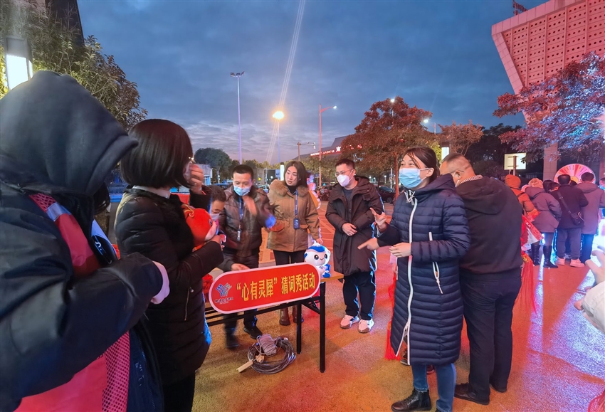 紅火的燈籠掛在枝頭,濃濃的年味已在廣場上蔓延,燈籠上懸掛有節(jié)日燈謎以及黨的二十大知識、民族團結知識、廉潔知識、垃圾分類知識、安全生產(chǎn)知識的題目。大家三五成群看謎面、猜謎語,沉浸在猜謎解謎的樂趣中。這種寓教于樂的方式,充分調(diào)動了大家學習的興趣,大大提高了黨員教育的實際成效。