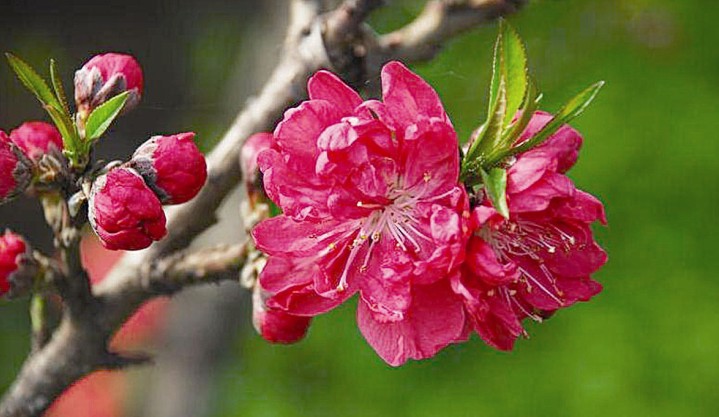 桃花是我國(guó)傳統(tǒng)的園林花木,其樹(shù)態(tài)優(yōu)美,枝干扶疏,花朵豐腴,色彩艷麗,為早春重要觀(guān)花樹(shù)種。桃花原產(chǎn)于我國(guó)中部及北部,栽培歷史悠久,現(xiàn)各地廣為種植。性喜陽(yáng)光、耐寒、 耐旱、不耐水濕。
