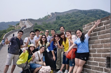 隨著擁擠的人流,我們登上了一座又一座的烽火臺,先前地勢平坦,我們并不覺得累,但隨著地勢逐漸陡峭,愈往上愈吃力,加上烈日炎炎,以及北京特別干燥的氣候,不覺讓人感到口干舌燥和勞累,但長城兩邊的景色并沒有讓我們停止腳步,站到高處俯視長城的那一刻,是最令人感動的時刻,一幅壯麗的圖畫展現(xiàn)在我的面前,那種蜿蜒,那種曲折盡收眼底,大有"無限風光在險峰"的感覺。真是感嘆我們的先人在那樣相對落后的條件下,居然能修建出這樣偉大的建筑,身為中國人,我感到無比的自豪!我們盡情的拍照、歡呼。