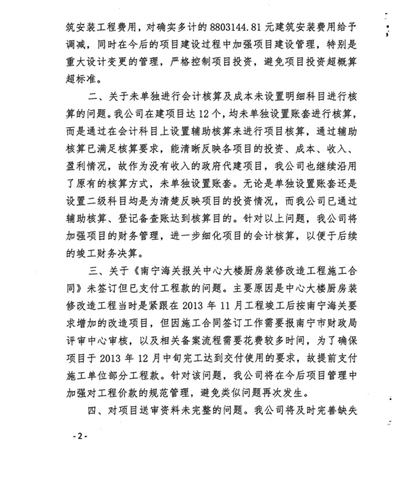 南寧軌道地產(chǎn)集團(tuán)有限責(zé)任公司關(guān)于對南寧海關(guān)報(bào)關(guān)中心工程預(yù)算執(zhí)行情況審計(jì)事宜的復(fù)函
