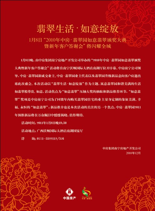 中房·翡翠園如意翡翠頒獎大典2011年1月8日盛裝開啟
