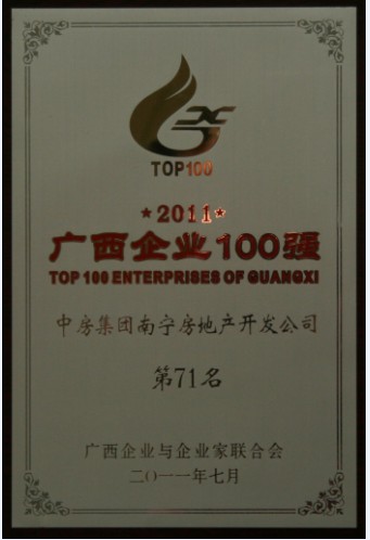 728,廣西企業(yè)與企業(yè)家聯(lián)合會(huì)在桂林發(fā)布了2011年廣西100強(qiáng)企業(yè)名單,中房集團(tuán)南寧房地產(chǎn)開發(fā)公司榮登2011廣西企業(yè)百強(qiáng)榜,名列第71位。